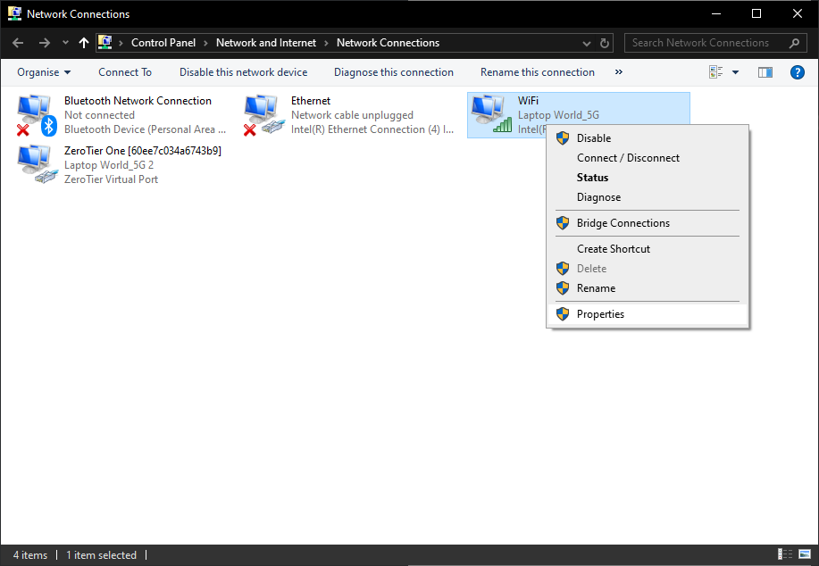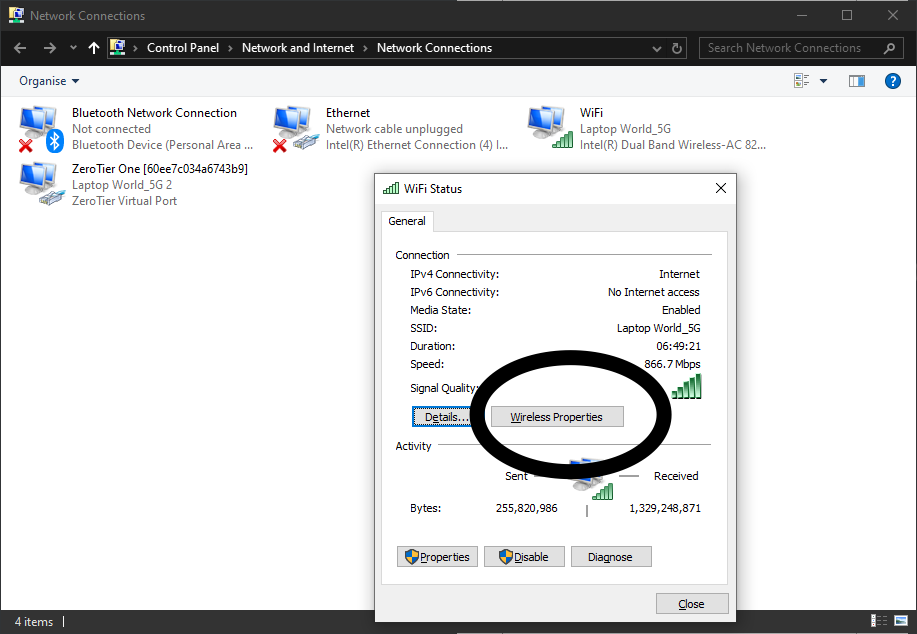 Double-click on the WiFi network you’re connected to, and a dialog box will appear. Navigate to the ‘Properties’ option and click on it.