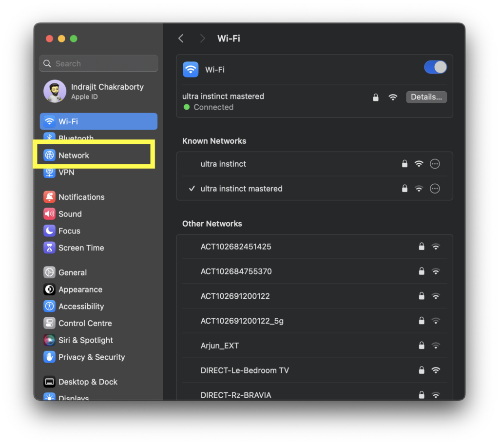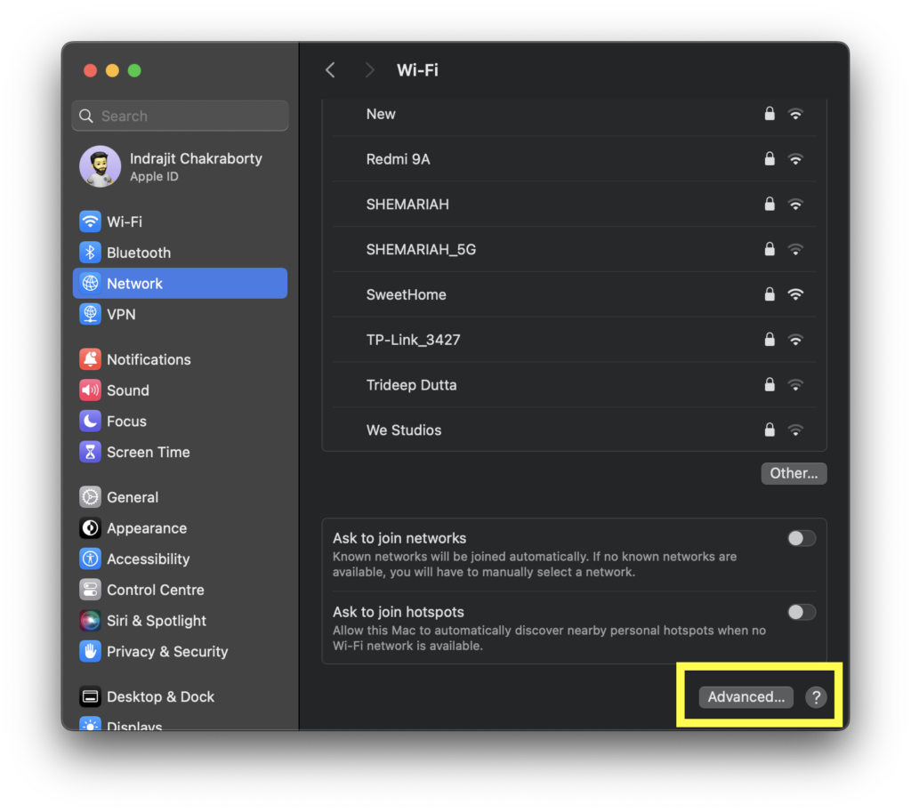 If you are using a Apple MacBook and on the current MacOS Ventura, start by opening ‘System Preferences’ and clicking on the ‘Network’ icon.