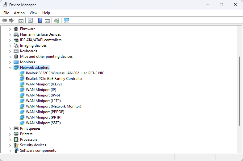 In the Device Manager window, click on the “Network Adapters” drop-down menu to expand it.