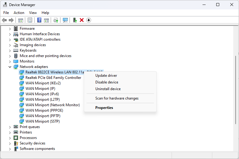 Right-click on your Wi-Fi driver, which is usually labeled with the word “Wi-Fi” or the name of your network adapter, and select “Properties” from the context menu.