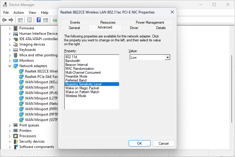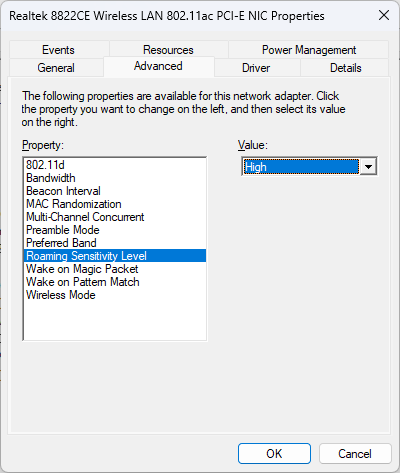 Look for the “Roaming Sensitivity,” “Roaming Aggressiveness,” or a similar setting. The exact name may vary depending on your Wi-Fi driver.
