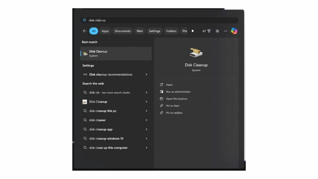 Step 1 – Open Disk Cleanup: Search for “Disk Cleanup” in your Start menu and open the tool.