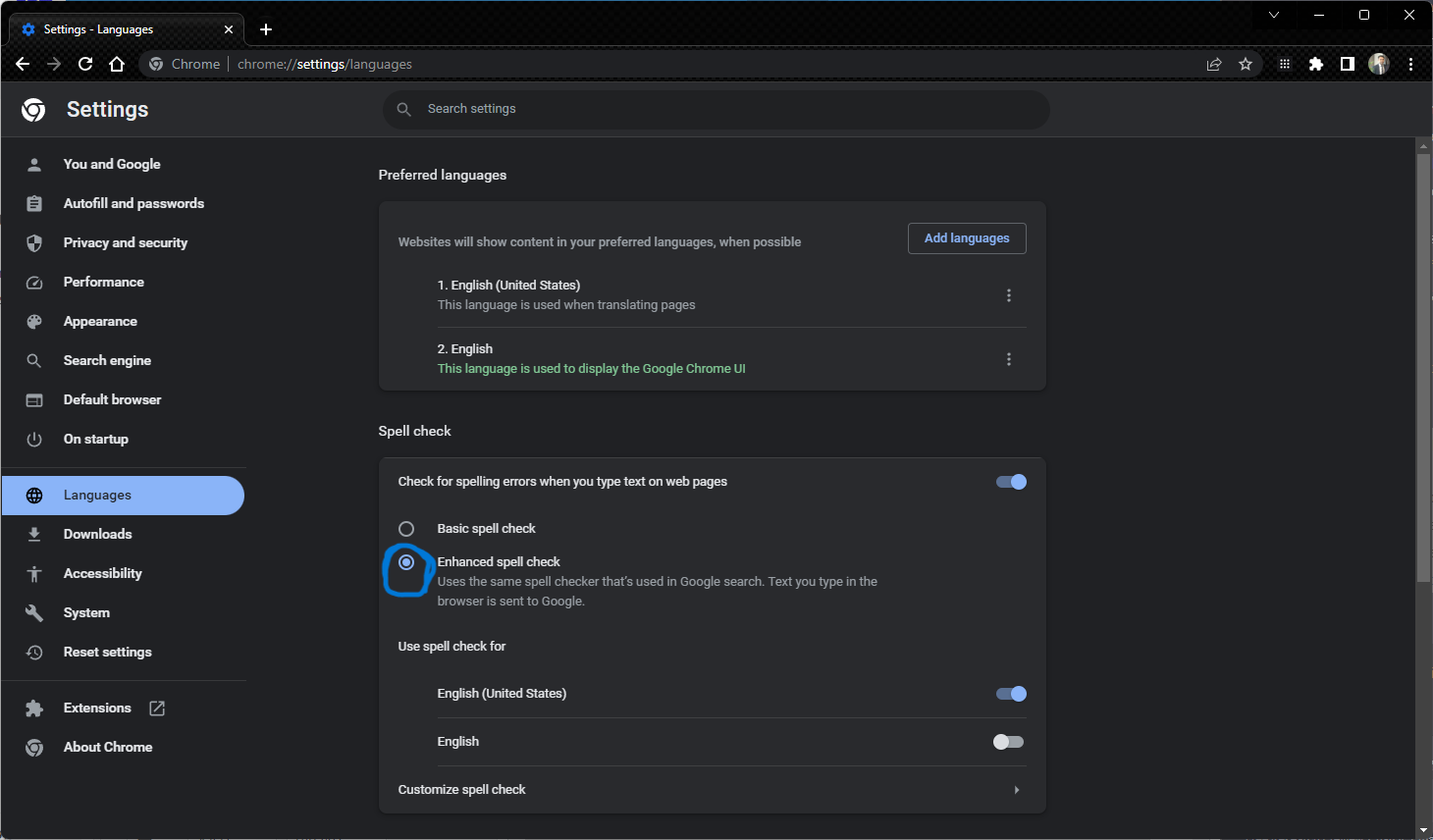 To enhance the spell-checking capability even further, choose the “Enhanced Spellcheck” option. This ensures a more comprehensive and accurate spellcheck across your Chrome applications.
