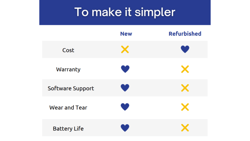 Here’s a guide to help you compare and understand the pros and cons of refurbished laptop vs new laptop so you can make an informed choice.