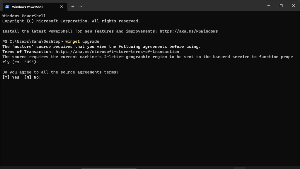 For those using this tool for the first time, it’s likely that you’ll encounter the application’s terms and conditions. If prompted, simply press ‘Y’ and then press Enter to proceed