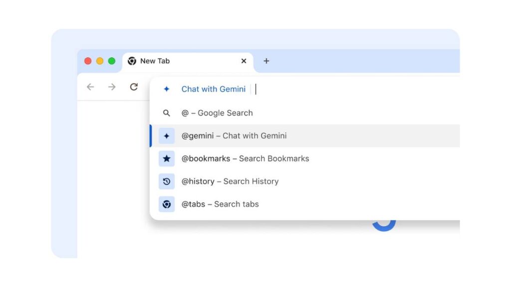 A standout feature in the Google Chrome New Update is the addition of Gemini AI. By typing “@” in the address bar and selecting “Chat with Gemini,” you can get immediate assistance with smart suggestions or queries, making browsing more intuitive and interactive.